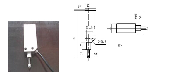 方形结构使用安装测杆朝下或水平放置.以螺钉固定.固定孔中心距为22±0.2㎜.或以Ø15轴夹紧. 如图1.图2所示 |